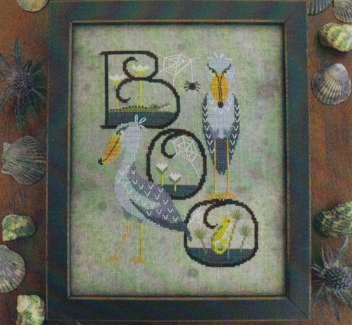 From the designer: "I don't know about you, but my social media feeds are full of interesting animals and the Shoebill Stork is one of my favorites. I particularly love the way they seem to "glare" at you, so they were perfect for a spooky season stitch!"