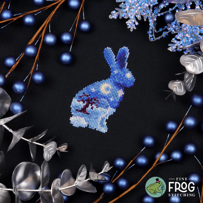 From the designer: "This elegant winter rabbit cross stitch project is the perfect way to bring a mystical winter landscape into your holiday or Christmas decorating. "