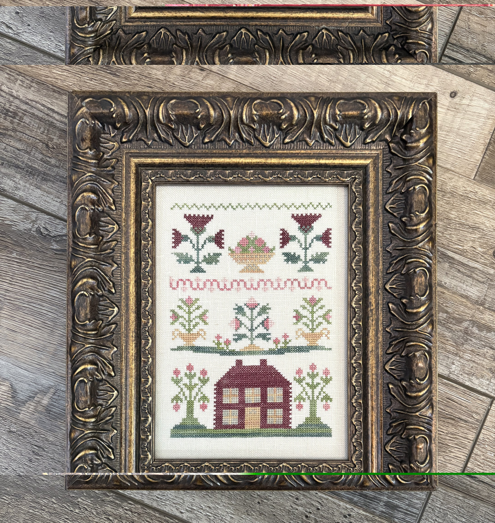 The model is stitched 1 over 2 on 38 count Legacy Linen Himalayan Fog