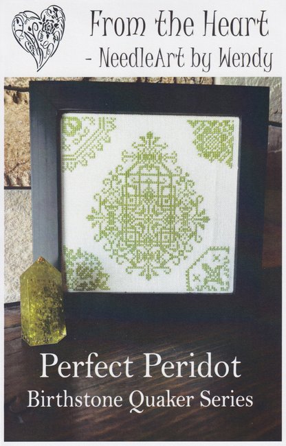 From the designer: "From the Birthstone Quaker series by From the Heart comes this offering for August done in tones of green and the large center motif appears to have a birdcage style motif in the center surrounded by vines and swirls."