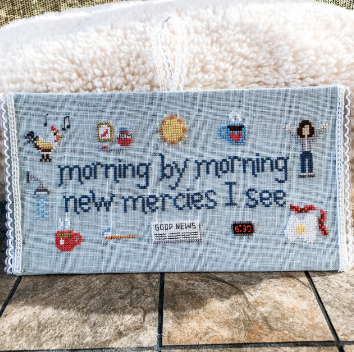 From the designer: "Using a line from the hymn lyrics of Great is Thy Faithfulness, this is the Morning Mercies cross stitch pattern. "